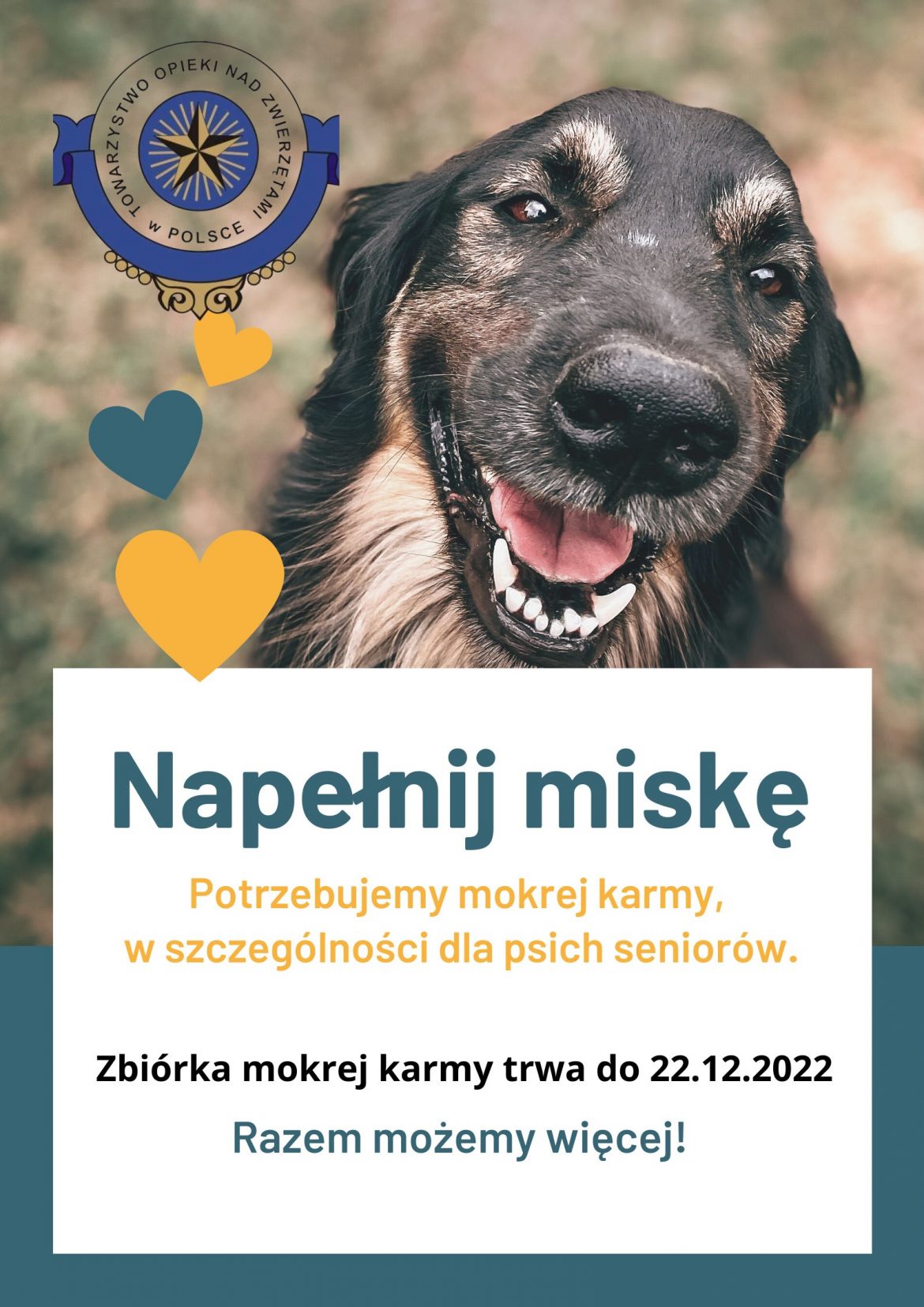 Zapraszamy wszystkich uczniów do wsparcia akcji charytatywnej. Do 22.12.22roku w ZSTB odbywa się zbiórka „mokrej” karmy dla psich i kocich seniorów, będących pod ochroną Towarzystwa Opieki nad Zwierzętami w Polsce. Dziś nie prosimy o adopcję, a jedynie o zapełnienie misek tych zwierząt, które niegdyś kochane, a dziś już stare i schorowane, mogą jedynie liczyć na pomoc ludzi o dobrych sercach.