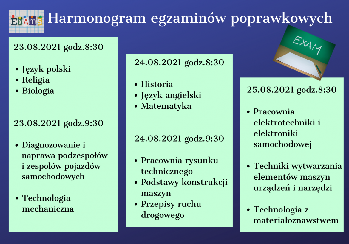 AktualnościWydarzenia Harmonogram egzaminów poprawkowych Przez A Gr 2 sierpnia 2021 2 sierpnia 2021 470 Wyświetlenia 470 0 FacebookTwitterThreadsBlueskyEmail Przeczytaj również Planeta Niepełnosprawność – jak zwiedzać ją bez lęku? 21 listopada 2025 Ogólnopolski Konkurs „Kolejowy Mastalerz” 21 listopada 2025 Ogólnopolska Olimpiada Zdrowia. 20 listopada 2025 Ogólnopolska Olimpiada Wiedzy i Umiejętności Fryzjerskich 20 listopada 2025 ⛏️ To była podziemna przygoda klas 3a i... 19 listopada 2025