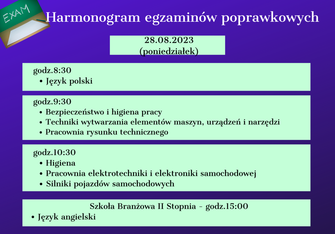 Aktualności Harmonogram egzaminów poprawkowych Przez A Gr 26 czerwca 2023 26 czerwca 2023 920 Wyświetlenia 920 0 FacebookTwitterThreadsBlueskyEmail Przeczytaj również Planeta Niepełnosprawność – jak zwiedzać ją bez lęku? 21 listopada 2025 Ogólnopolski Konkurs „Kolejowy Mastalerz” 21 listopada 2025 Ogólnopolska Olimpiada Zdrowia. 20 listopada 2025 Ogólnopolska Olimpiada Wiedzy i Umiejętności Fryzjerskich 20 listopada 2025 ⛏️ To była podziemna przygoda klas 3a i... 19 listopada 2025