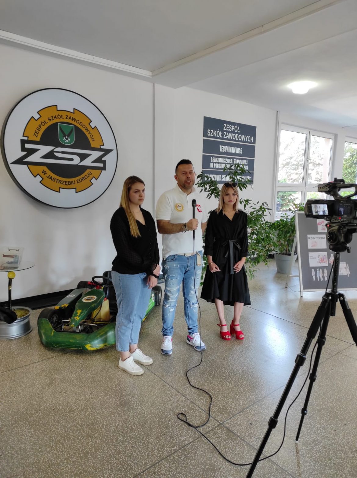 W ramach jutrzejszego finału Wojewódzkiego Konkursu Ligi Młodych Kreatorów odbył się wywiad z naszymi kreatorami – Bernadettą Króliczek i Darią Mojżysz. Organizator we współpracy z lokalnymi mediami przeprowadził rozmowę w związku z jutrzejszym finałem. W międzyczasie modelki zostały wsparte pomocą przy pokazie głównym ze strony profesjonalnej modelki pani Patrycji Pawlik. Jutrzejszy finał w Strumieniu został przygotowany. Trzymamy kciuki za naszych uczniów! Dziękujemy panu Kamilowi Handzelewiczowi za pomoc!