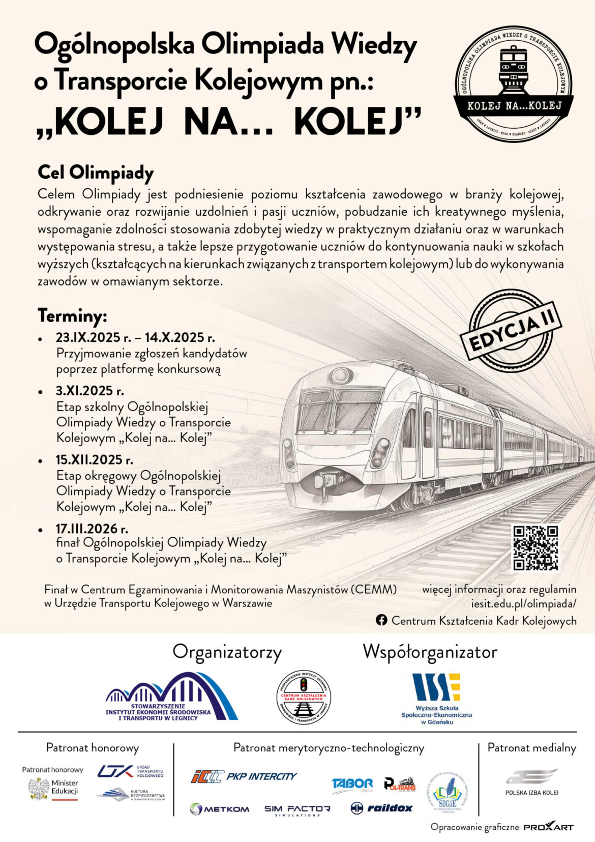 Nasza szkoła bierze udział w Ogólnopolskiej Olimpiadzie Wiedzy o Transporcie Kolejowym pn. Kolej na … kolej” – Edycja II, — trzymamy kciuki.