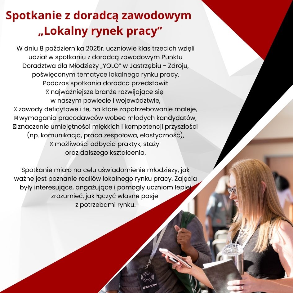 Aktualności Spotkanie z doradcą zawodowym Przez w W 15 października 2025 15 października 2025 131 Wyświetlenia 131 #OTK.2025#SDSiZP#ZSTB#JDK@miastoJasterzebieZdroj 0 FacebookTwitterThreadsBlueskyEmail Przeczytaj również Ogólnopolska Olimpiada Zdrowia. 20 listopada 2025 Ogólnopolska Olimpiada Wiedzy i Umiejętności Fryzjerskich 20 listopada 2025 ⛏️ To była podziemna przygoda klas 3a i... 19 listopada 2025 ✨Szkolenie z fryzur ślubnych ✨ 19 listopada 2025 IV edycja konkursu fryzjerskiego o Tytuł „Mistrza Upięcia”... 19 listopada 2025