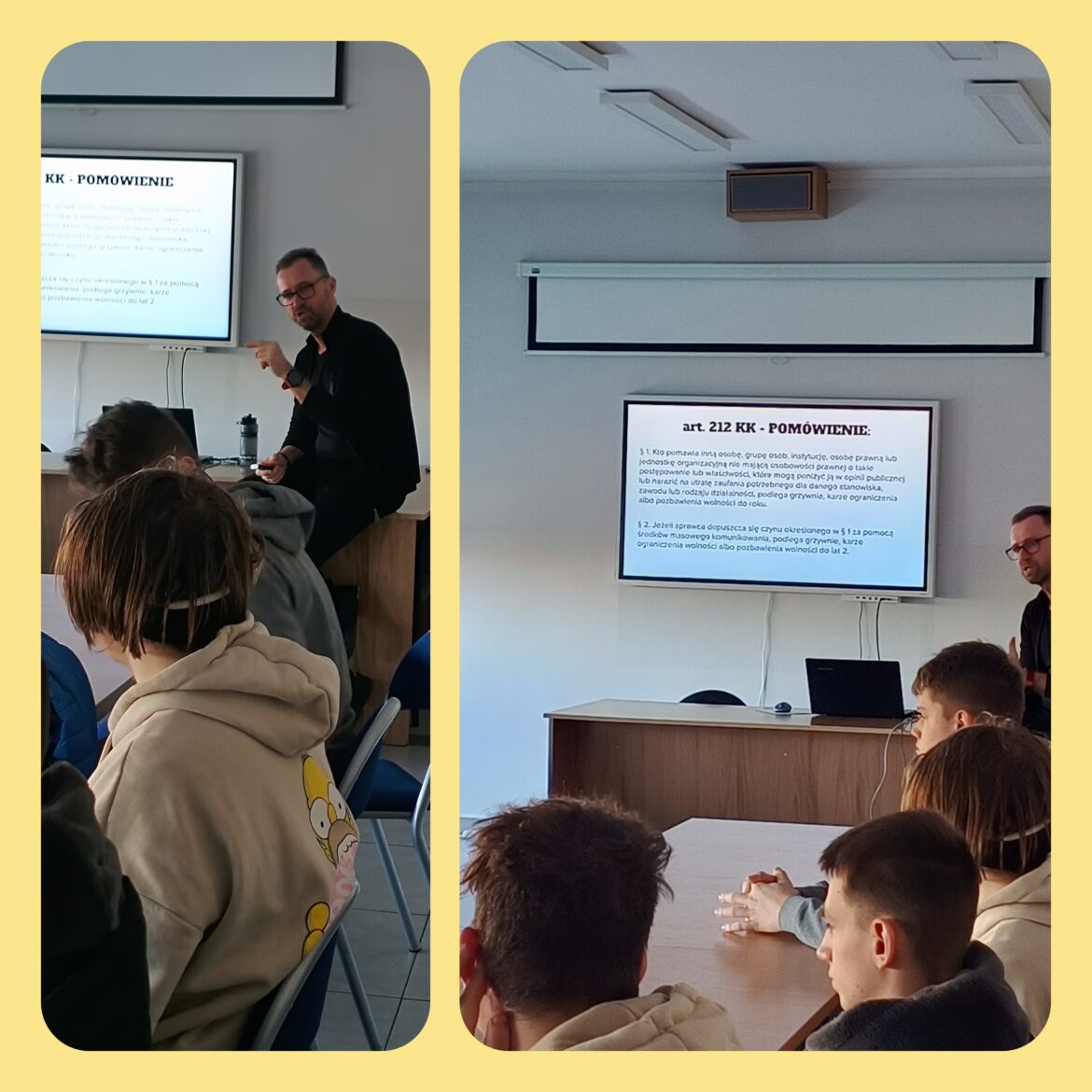 Na sali audiowizualnej odbyły się spotkania ze specjalistą w dziedzinie profilaktyki uzależnień. Tematem rozmowy były negatywne skutki korzystania z telefonów komórkowych oraz zagrożenia związane z aktywnością w internecie.