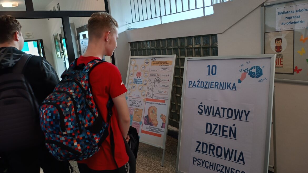 10 października obchodzimy Światowy Dzień Zdrowia Psychicznego, który ma na celu podniesienie świadomości na temat problemów ze zdrowiem psychicznym oraz promowanie dobrego samopoczucia. W naszej szkole odbyły się tematyczne lekcje, a na korytarzu wystawiono na ten temat stelaże.
