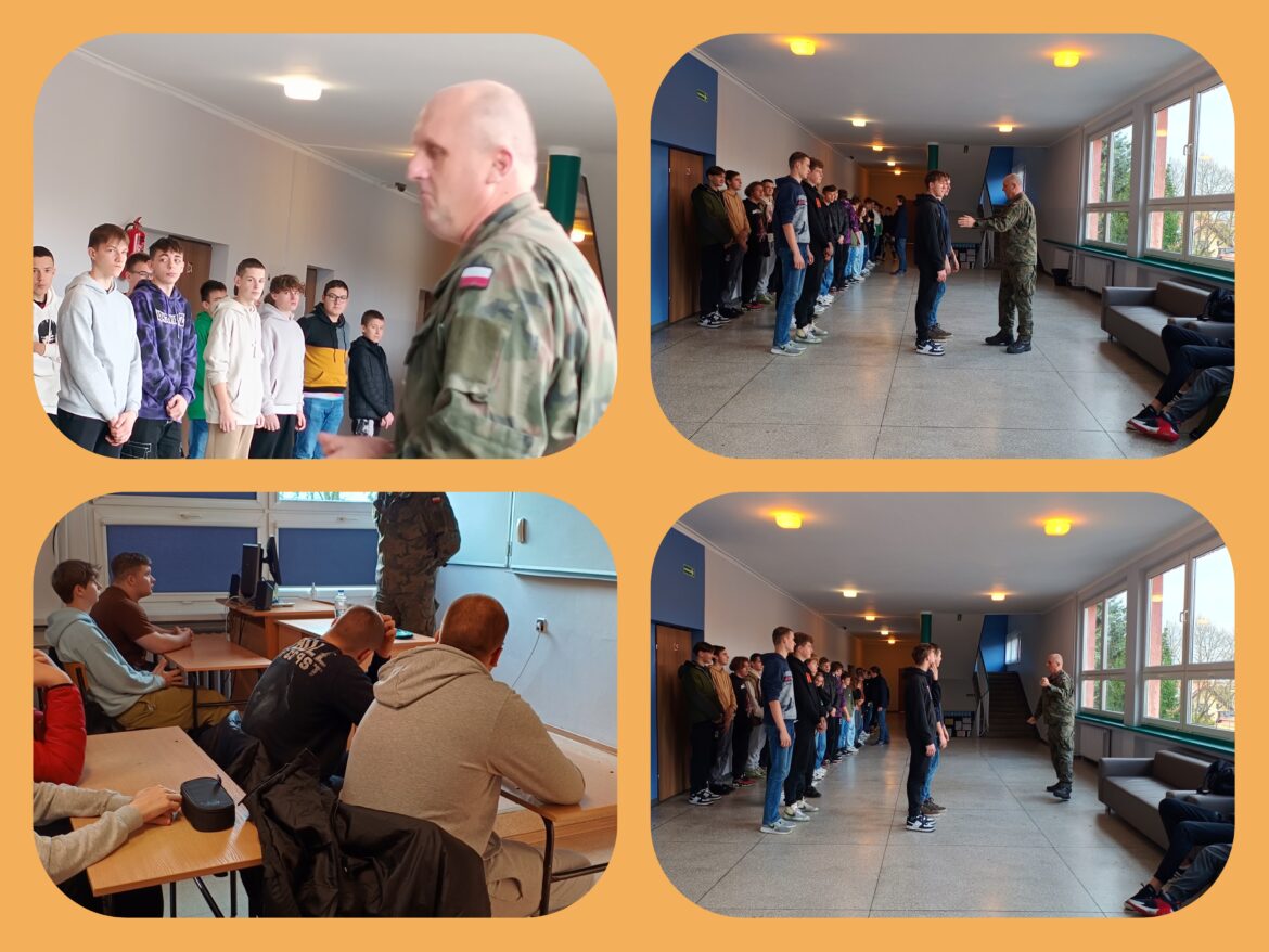 Wojsko pełni niezwykle istotną rolę w życiu każdego państwa. To instytucja odpowiedzialna za bezpieczeństwo naszego kraju. Jego głównym zadaniem jest obrona państwa przed wszelkimi zagrożeniami zewnętrznymi. W sytuacjach kryzysowych, takich jak powodzie, trzęsienia ziemi czy katastrofy ekologiczne, wojsko działa jako pomoc medyczna, zapewnienie żywności i wody czy ewakuacja ludzi. O tych ważnych funkcjach wojska mogli usłyszeć nasi uczniowie w czasie prelekcji z przedstawicielem WCR Rybnik Młodzież zobaczyła filmik o codzienności na służbie oraz zaznajomiła się z zasadami rekrutacji. Największą atrakcją spotkania była przeprowadzona musztra.
